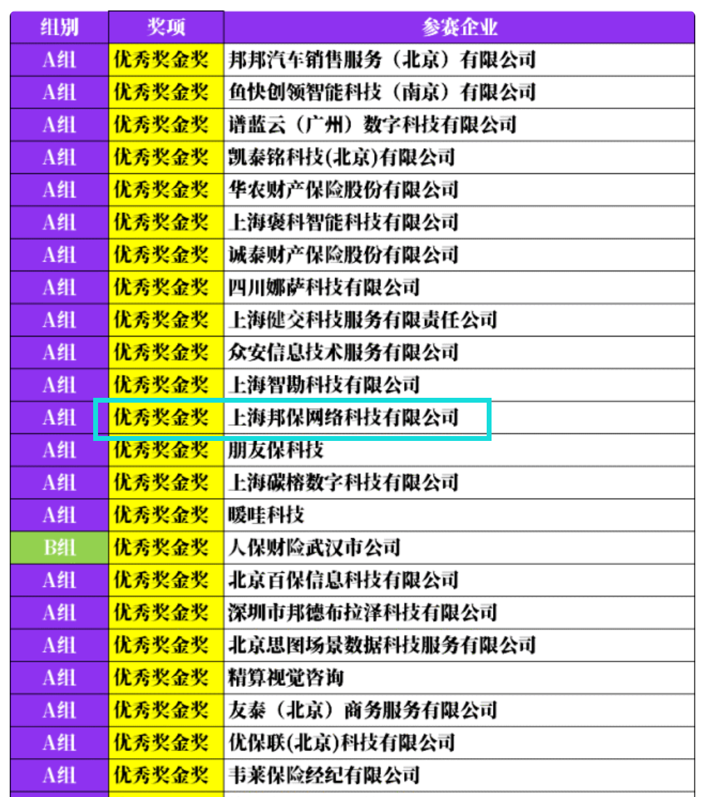 2022年6月,公(gong)司控(kong)股子公(gong)司上海邦保網(wang)絡科技有限公(gong)司在由(you)“上海金融科技產業聯(lian)盟”支(zhi)持,分子實驗(yan)室與瑞士再保險聯(lian)合舉(ju)辦的《2022年度(du)保險科技創新大賽(sai)》預賽(sai)“交(jiao)易(yi)與中介(jie)賦能”獲得(de)“優秀獎金獎”。