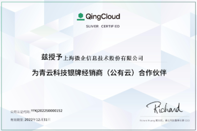 2021年(nian)12月,微企信息成為青云科(ke)技銀牌經銷(公有云)商合(he)作伙伴(ban)。